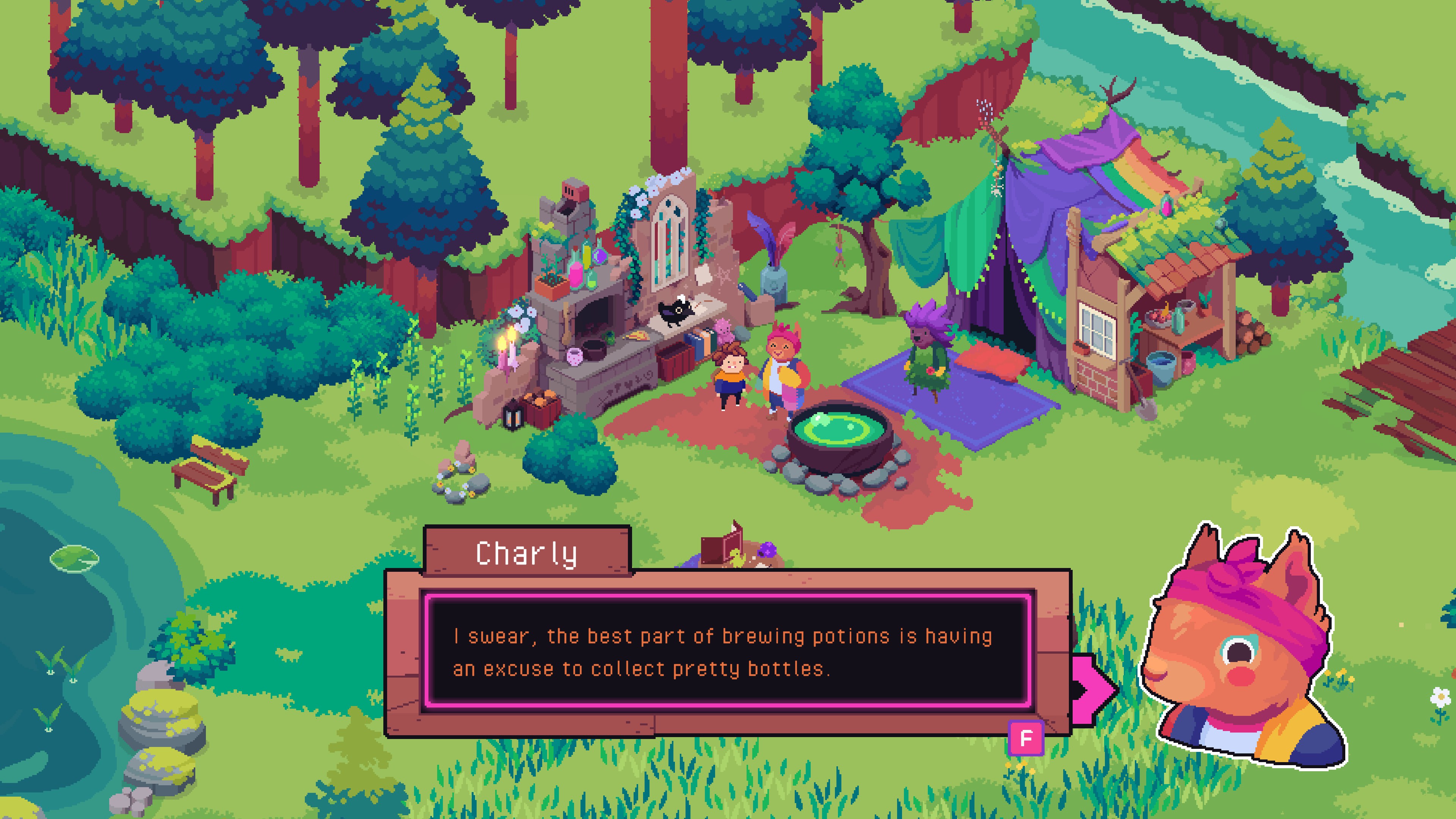 Упав в один из этих загадочных порталов, вы попадаете в этот новый для вас мир и встречаете местную ведьму по имени Сэйдж, которая считает вас лучшим помощником в своих планах Она берет вас в ученики, и вы помогаете ей искать ее пропавшего фамильяра Пухомишку.
